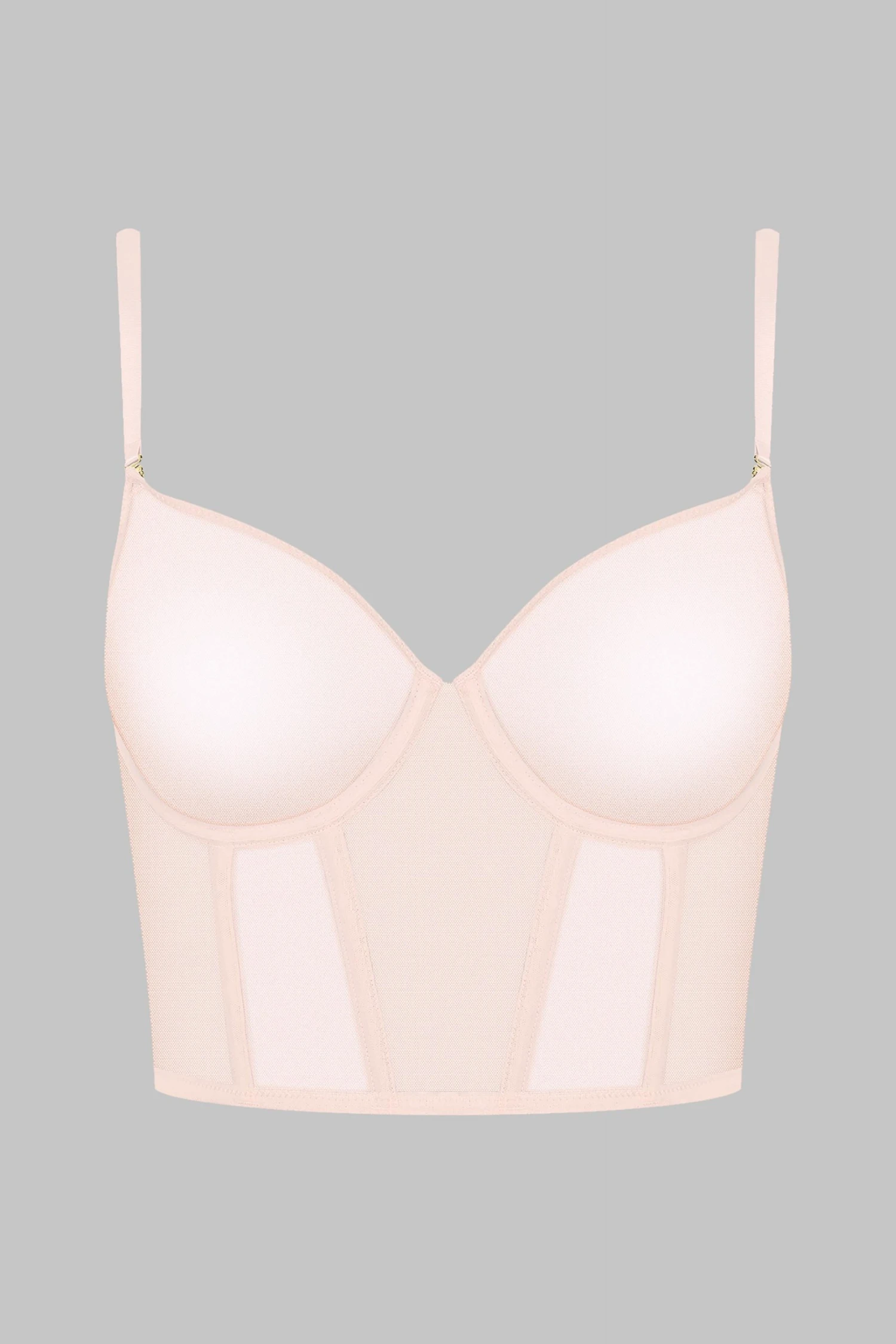 Bustier bra with underwires in 100% sheer mesh. Seamless, moulded cups that fit and shape the breasts perfectly.