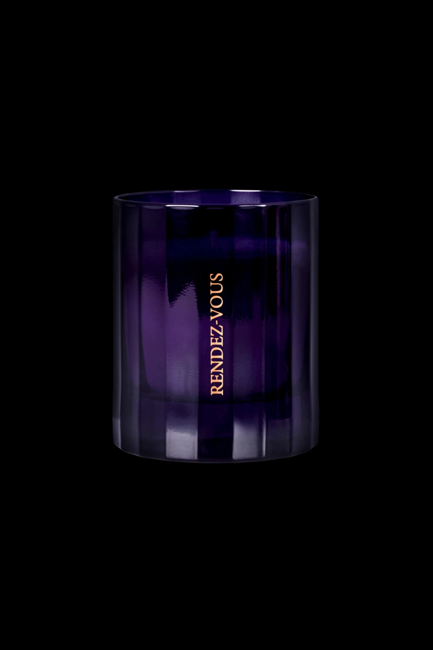 Lacquered, screen-printed faceted glass that gives the candle flame a unique colour as it gradually burns down.