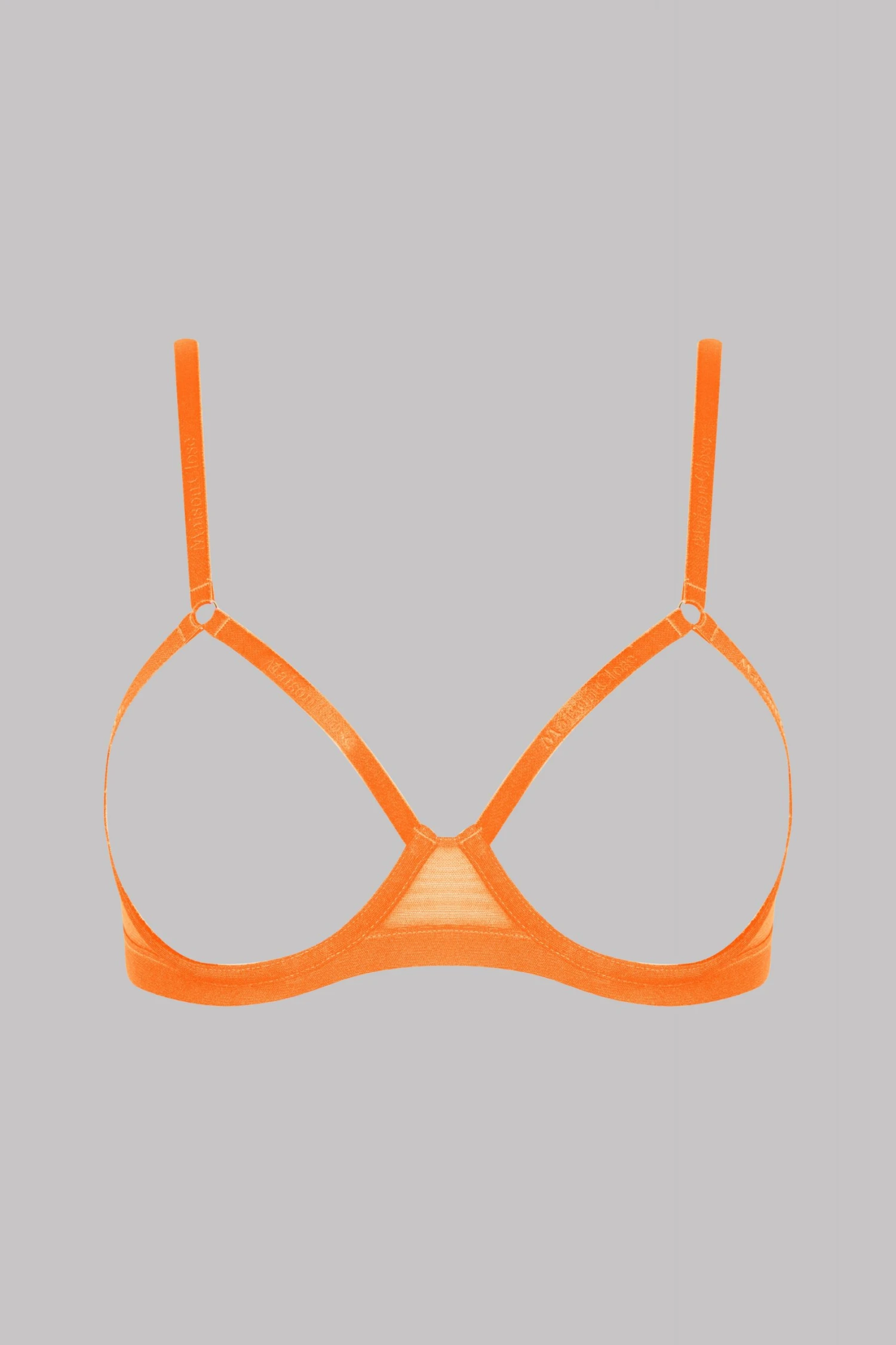 With its sexy design and bright colour, the Corps à Corps Neon naked breast bra is the collection’s cheeky style.