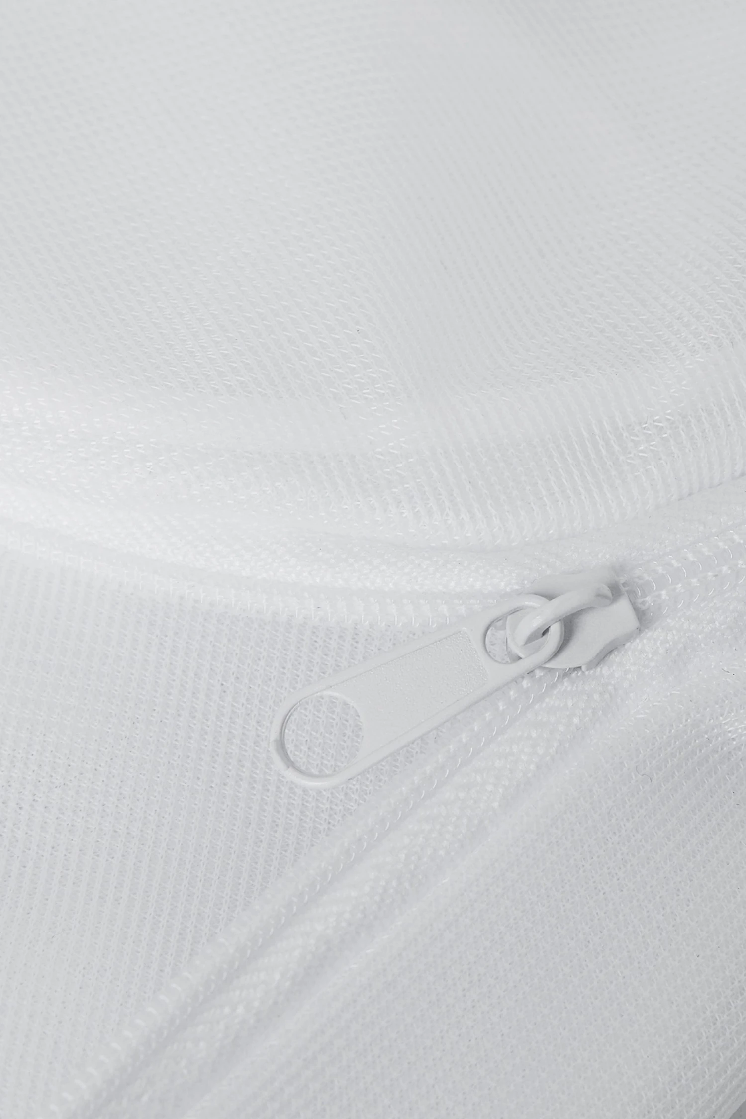 Soft, stretchy mesh wash bag. Protects your lingerie in the washing machine. Round design ideal for bras. Zip fastening. Flexible mesh wash bag with round edges.