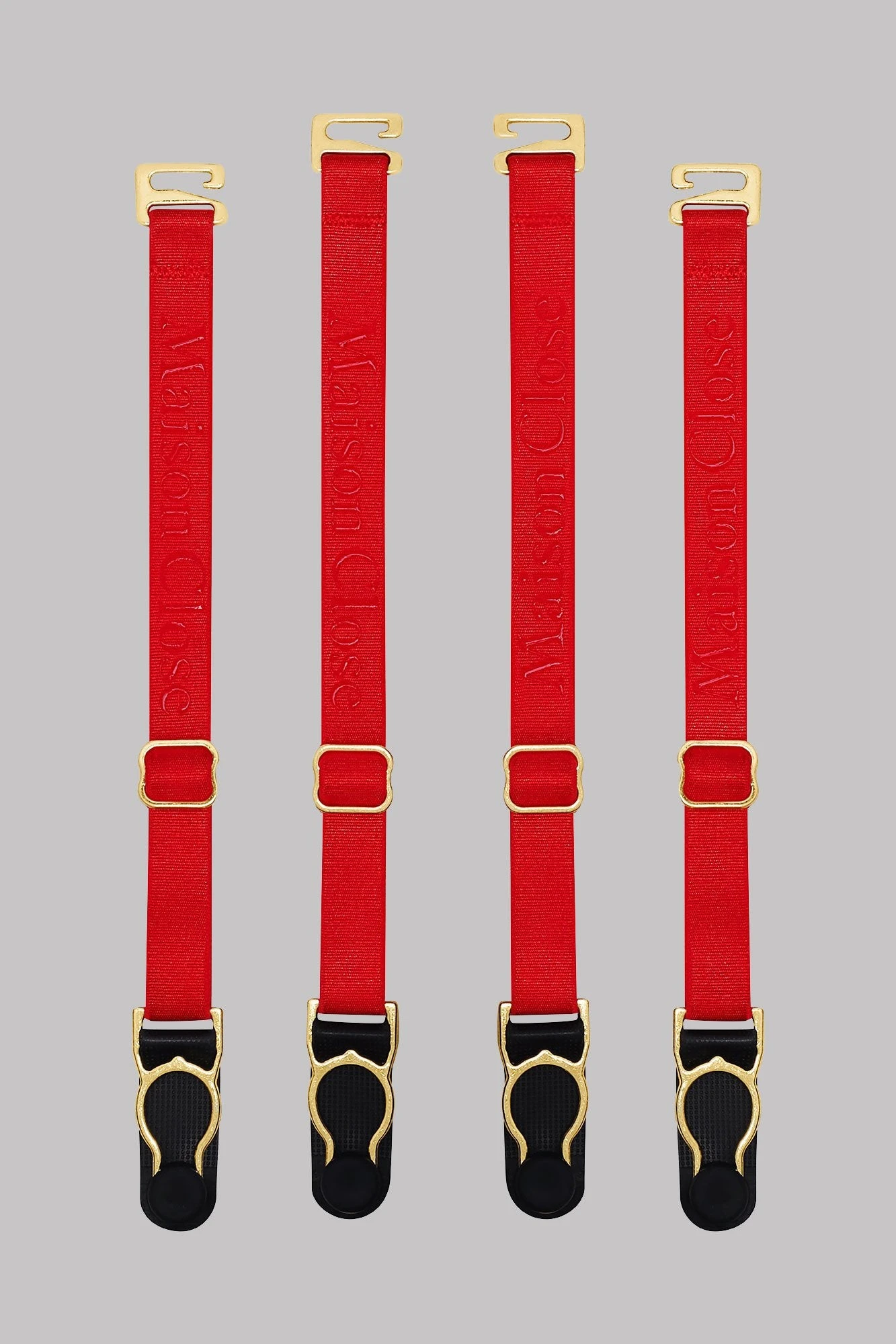 The pieces are stretch and adjustable and will bring a vibrant touch to spice up your favorite Maison Close underwear.