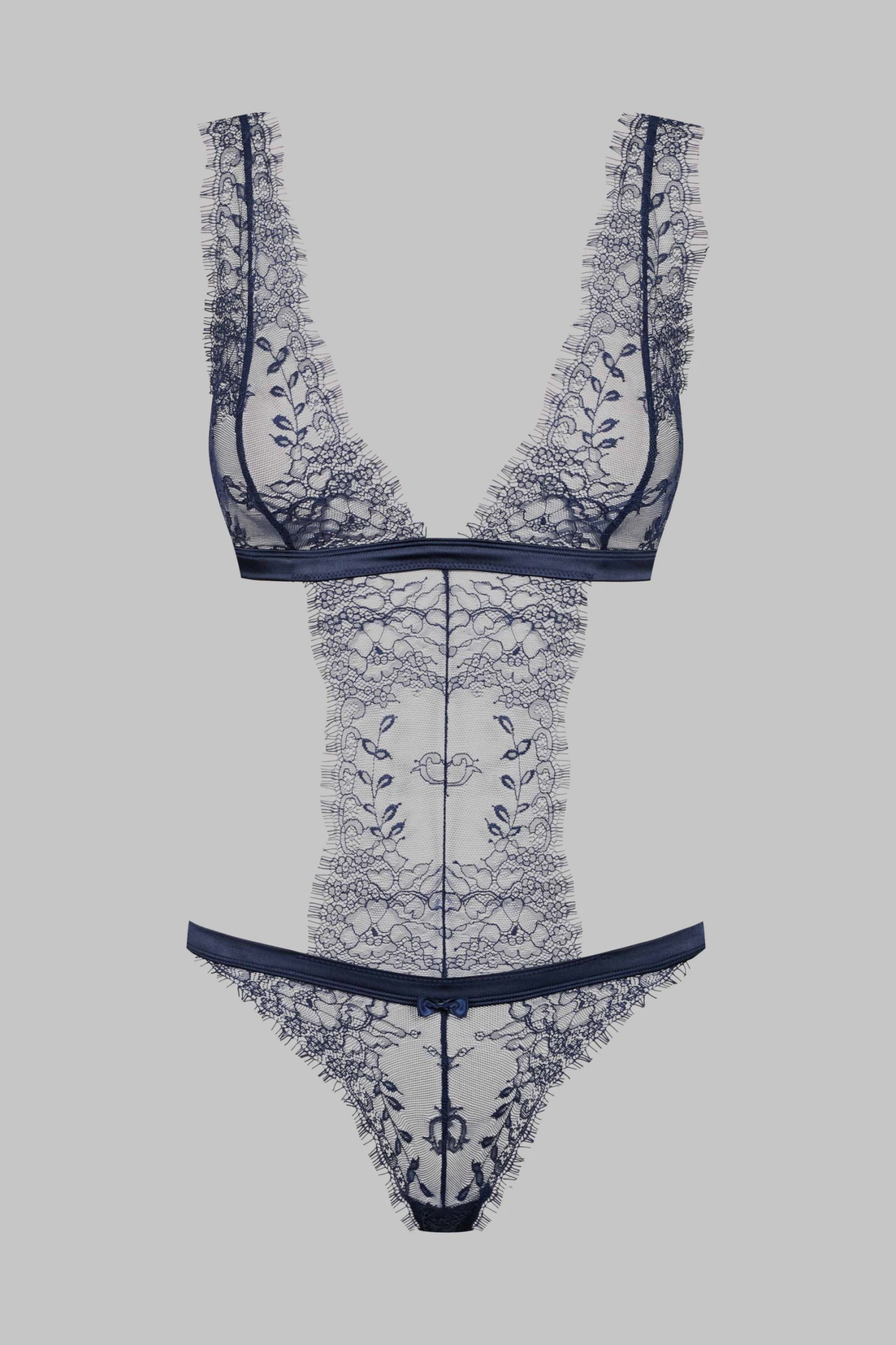 Under satin and provocative lace hide the most indecent proposals. Available in sumptuous midnight blue satin and unique lace to create pieces both erotic and voluptuous, taking possession of each lover in an abyss of endless dreams.