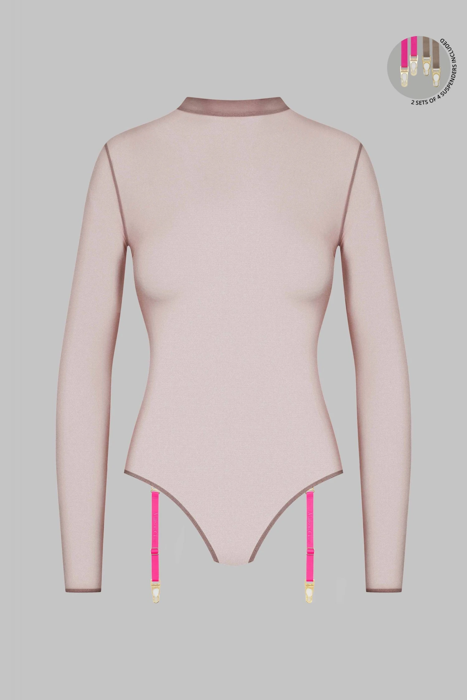 The body comes with 2 sets of removable and adjustable suspenders to switch depending on the mood of the day! The neon pink suspenders give a touch of color and the nude suspenders offer a monochrome style.