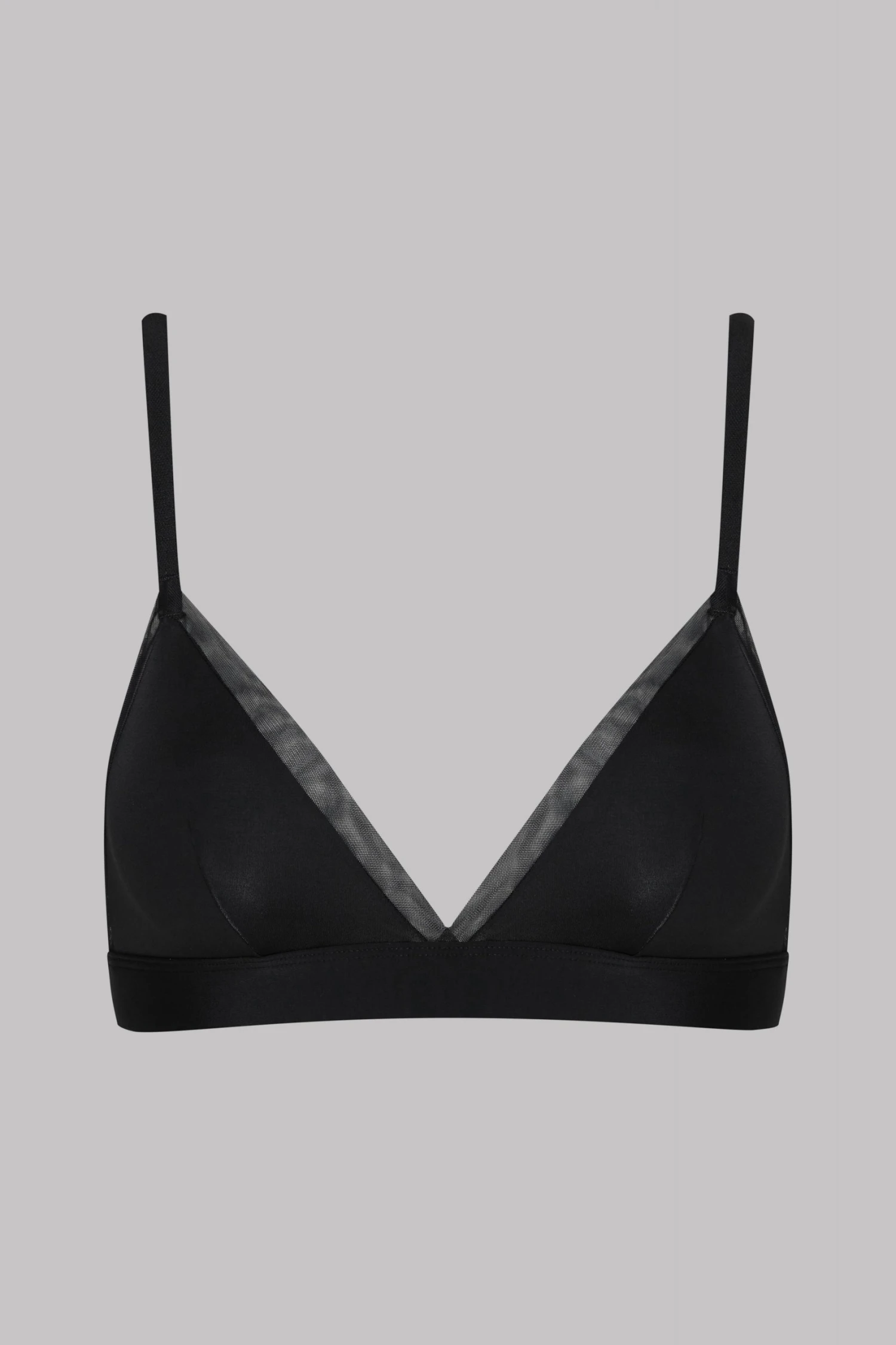 Triangle bra (non-wired) in opaque microfiber. Cups with mesh trim. Elasticated underband for better support. • Triangle style