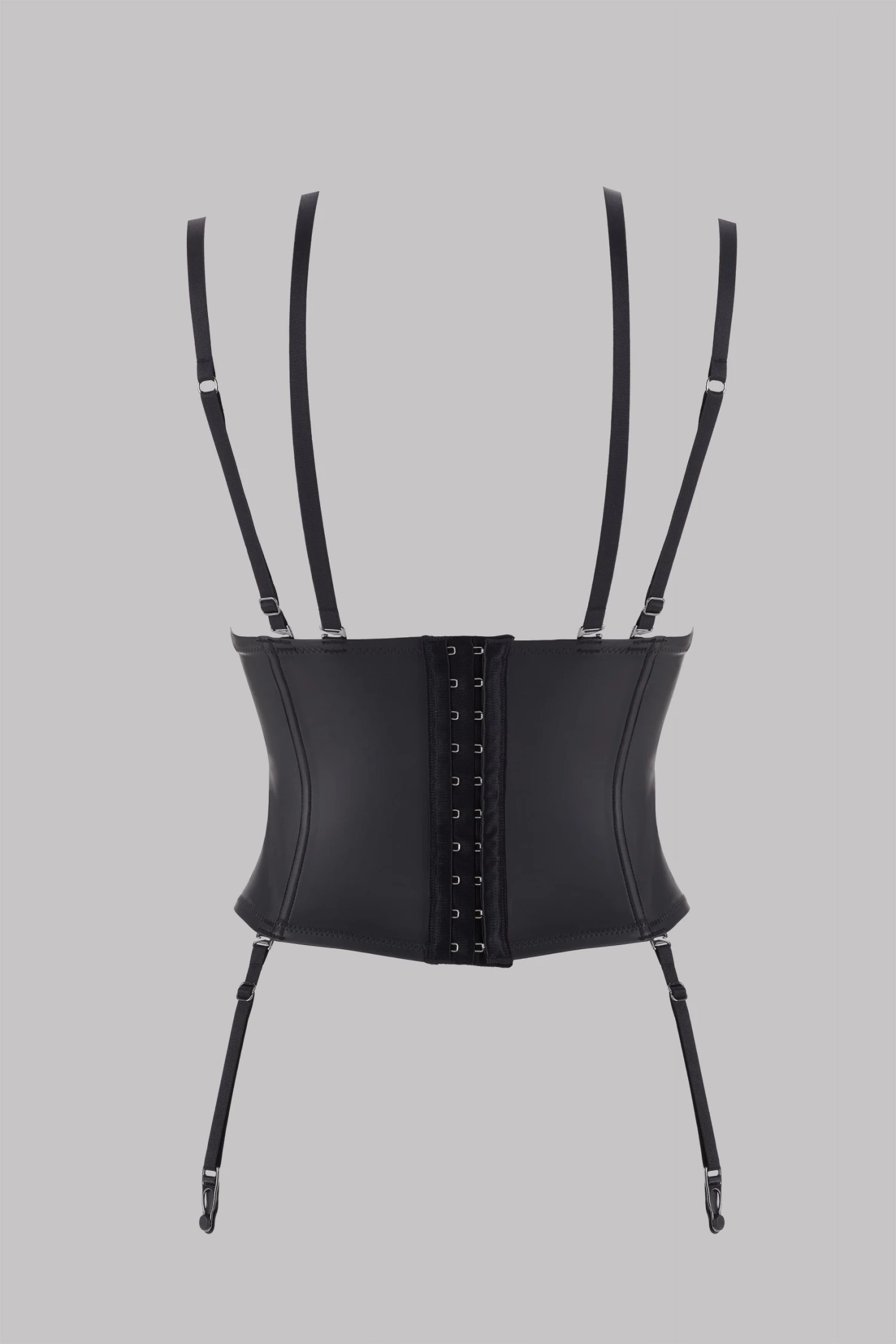 With its boned body, the Chambre Noire waist cincher is made of a matte leather-effect fabric that brings out your curves to perfection while visually slimming your figure.