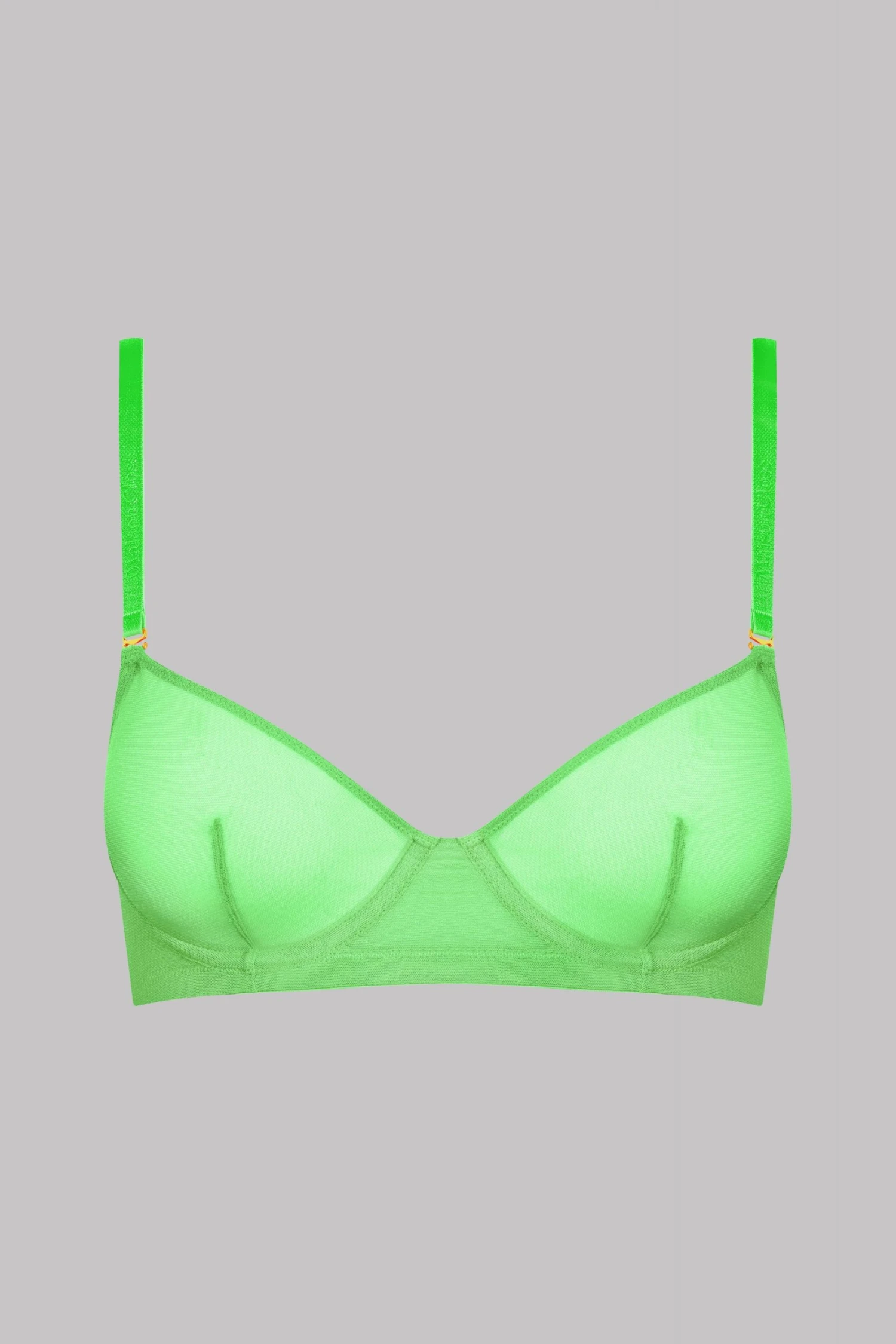 Look irresistible in the Corps à Corps Neon iridescent sheer wire bra.