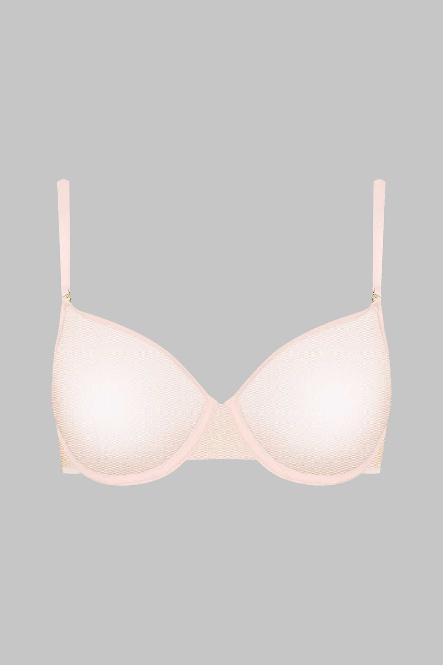 Wire bra with underwires in 100% sheer mesh. Seamless, moulded cups that fit and shape the breasts perfectly. Sleek and subtle hook and loop back closure. Thin, removable and adjustable straps.